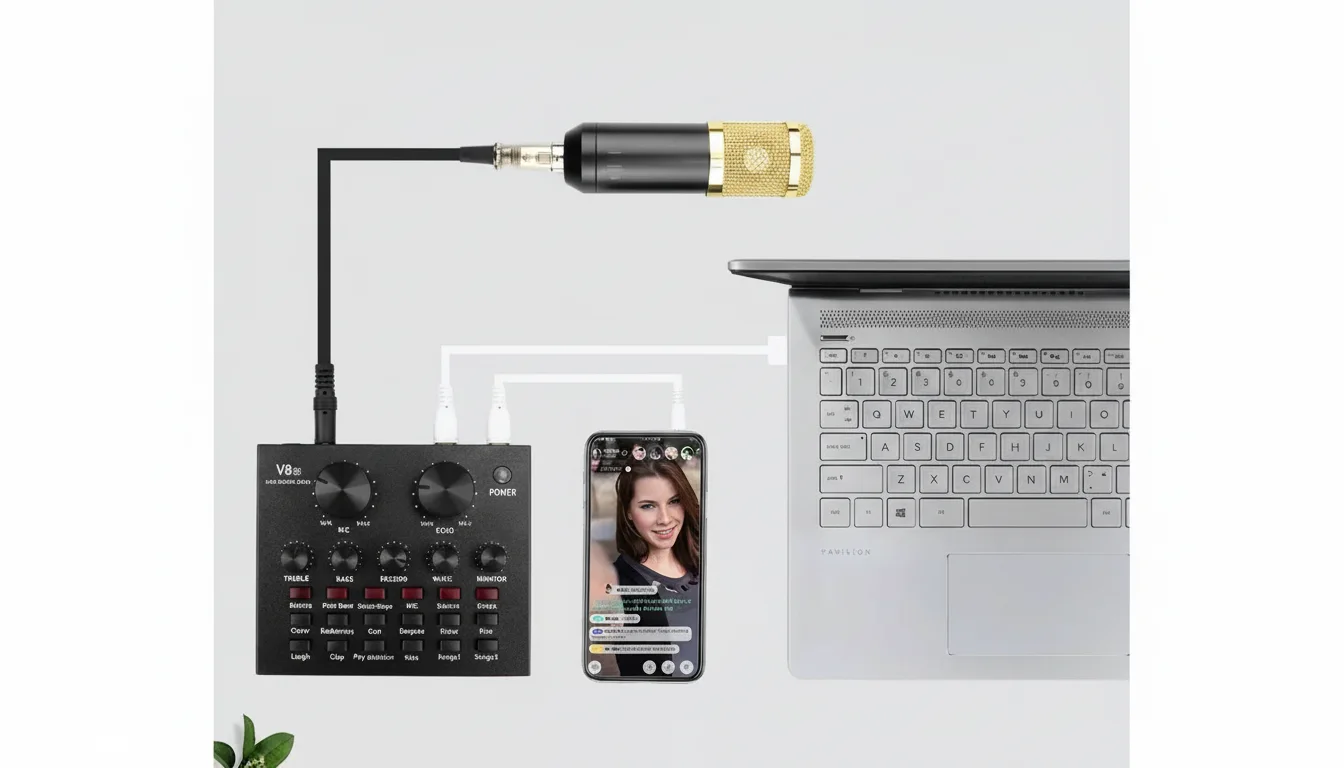طقم ميكروفون احترافي للبث والتسجيل مع كرت صوت V8